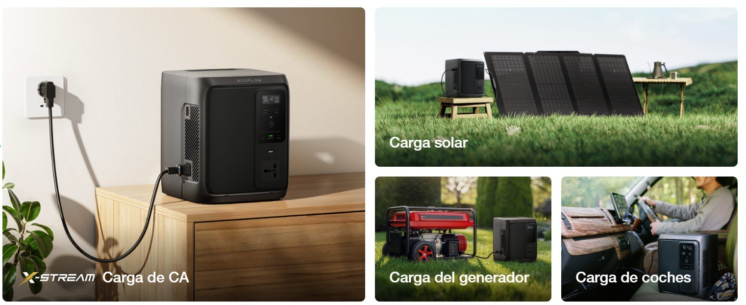 Con la carga rápida CA X-Stream de EcoFlow, el DELTA 3 1000 Air se recarga en tan solo 2 horas, por lo que estará listo antes del próximo apagón. Para mayor flexibilidad, también puede recargarlo con hasta 500 W de energía solar para obtener energía gratuita, o recargarlo con un generador o un coche cuando no esté conectado a la red eléctrica.