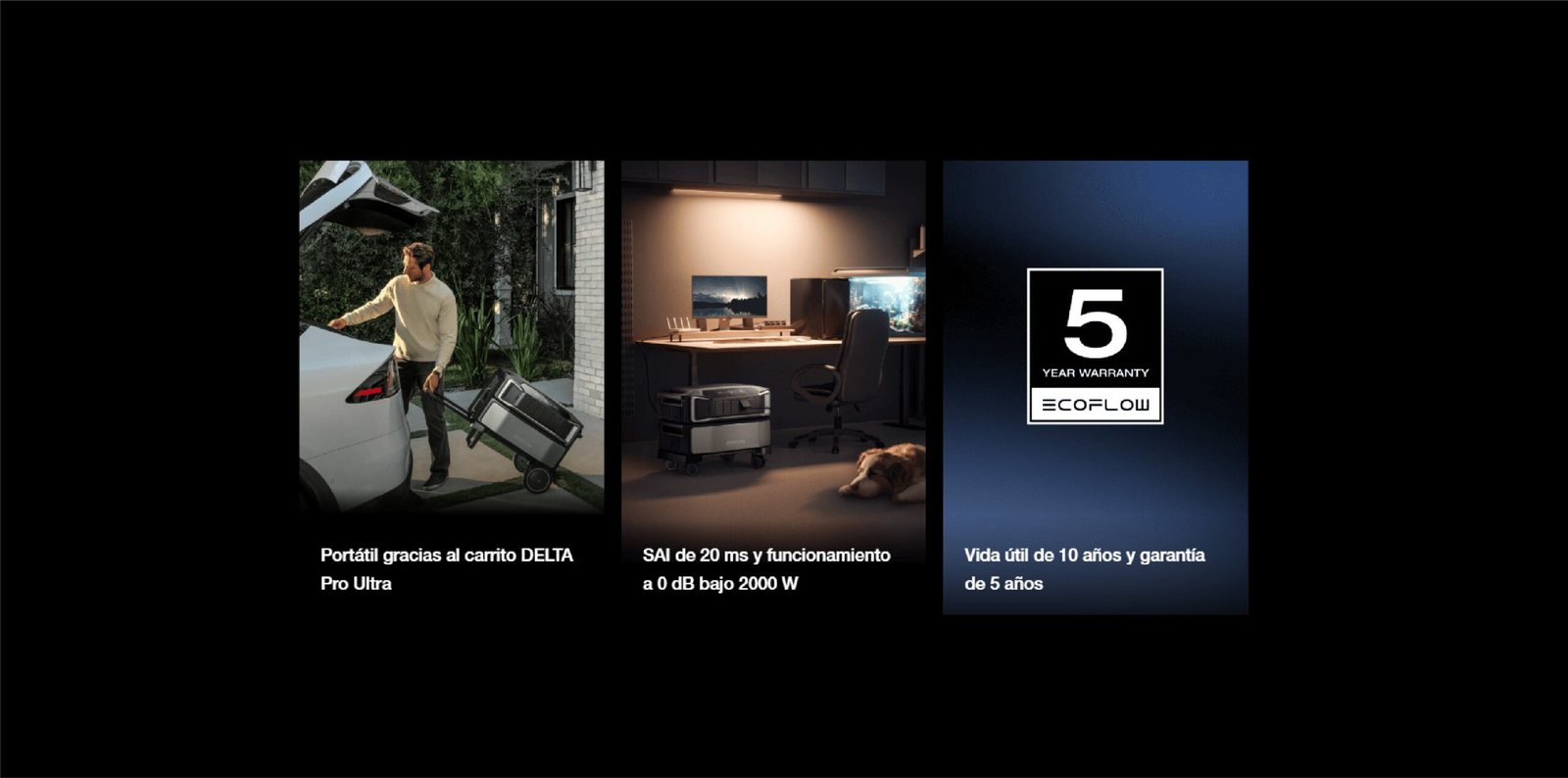 Gracias al SAI online de EcoFlow DELTA Pro Ultra, apenas notarás los cortes de luz. EcoFlow DELTA Pro Ultra protege tus dispositivos más delicados las 24 horas, funcionando en silencio a 0 dB, para trabajar desde casa o dormir plácidamente.*
